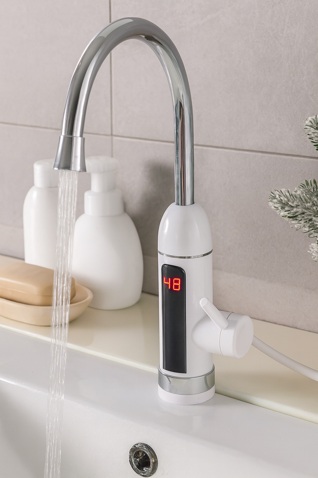 Ugrađeni grejač od visokokvalitetnog nerđajućeg čelika omogućava brzu i stabilnu regulaciju temperature, dok je instalacija jednostavna – kao obična slavina.